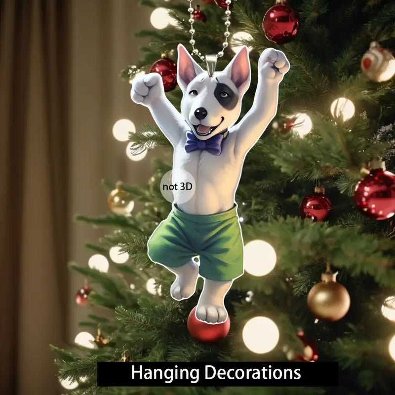 Add charm to your decor with this shimmery acrylic Bull Terrier pendant. Perfect for Christmas trees, car interiors, or year-round decor, it’s a festive gift for any animal lover—no electricity required!
